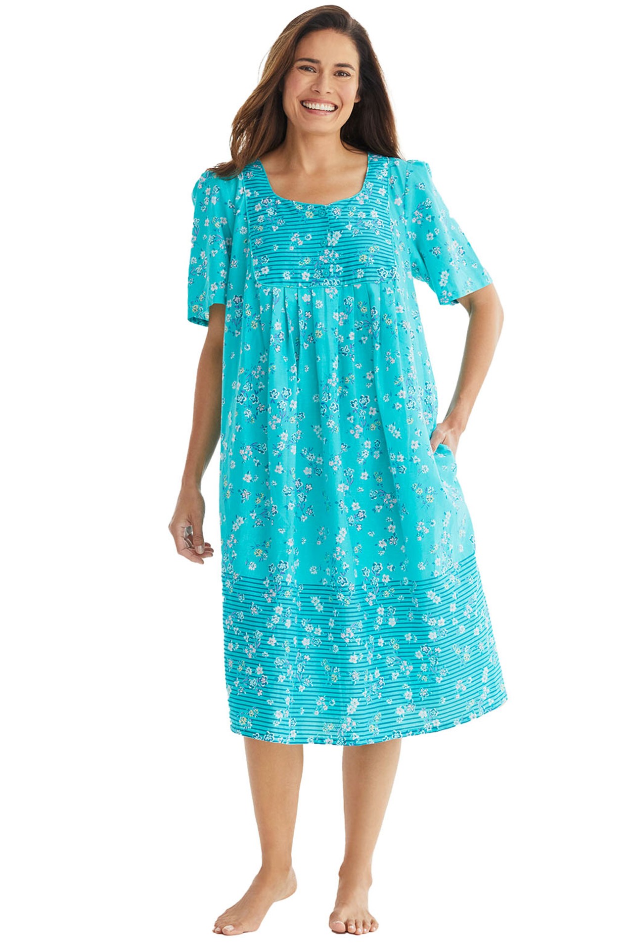 Relax in this pure cotton lounger that offers comfort and a sweet, printed style. Length 44in. Pattern may slightly be different each dress.