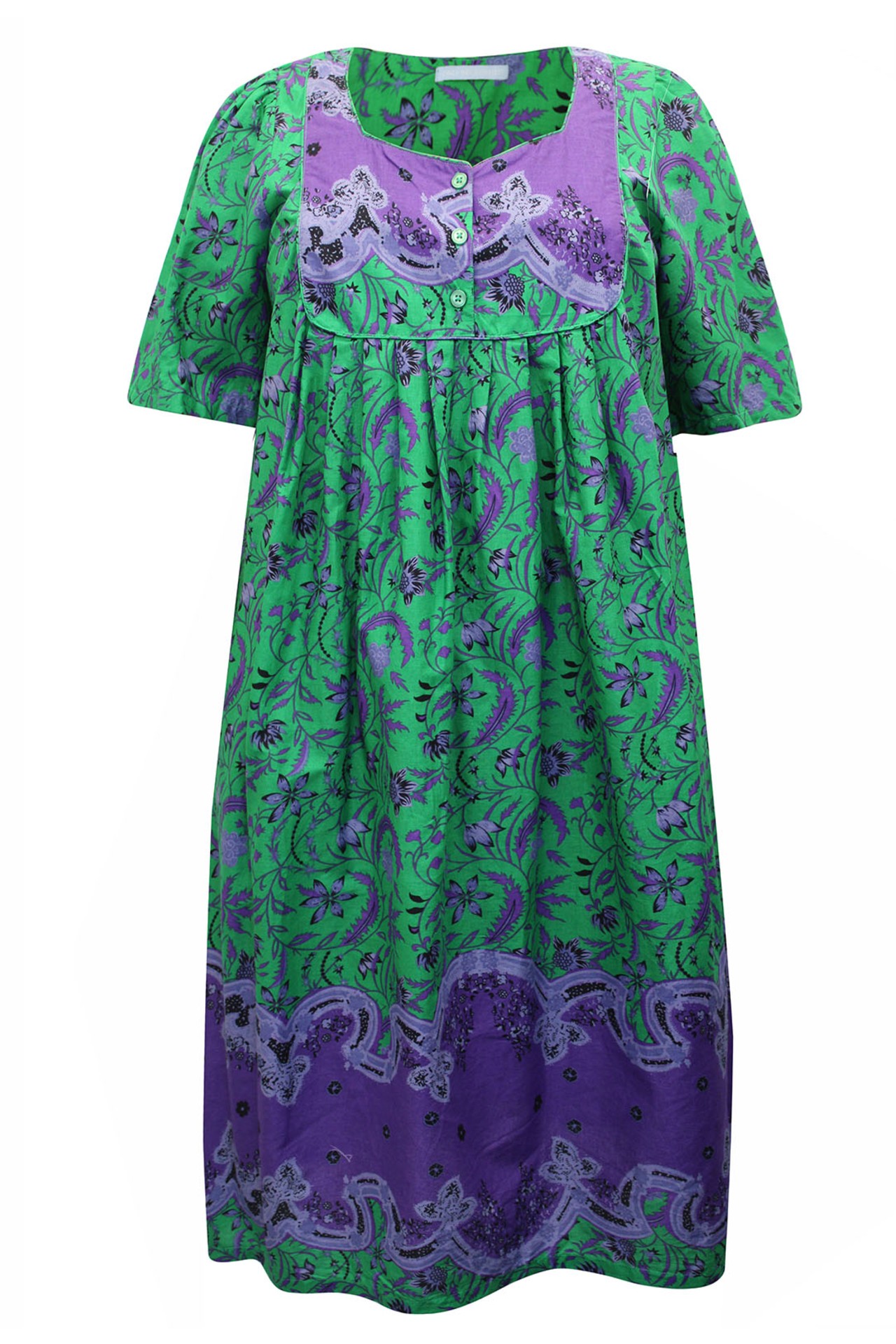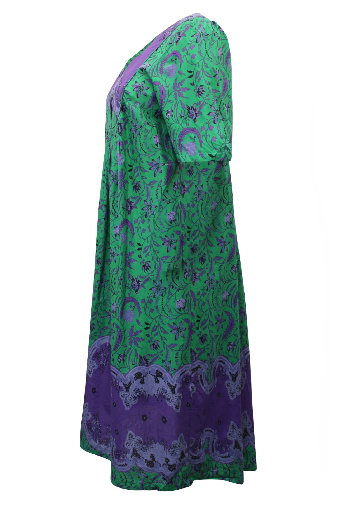 100% Cotton Green Floral Printed Short Lounger Dress Product Code: B-DR10007