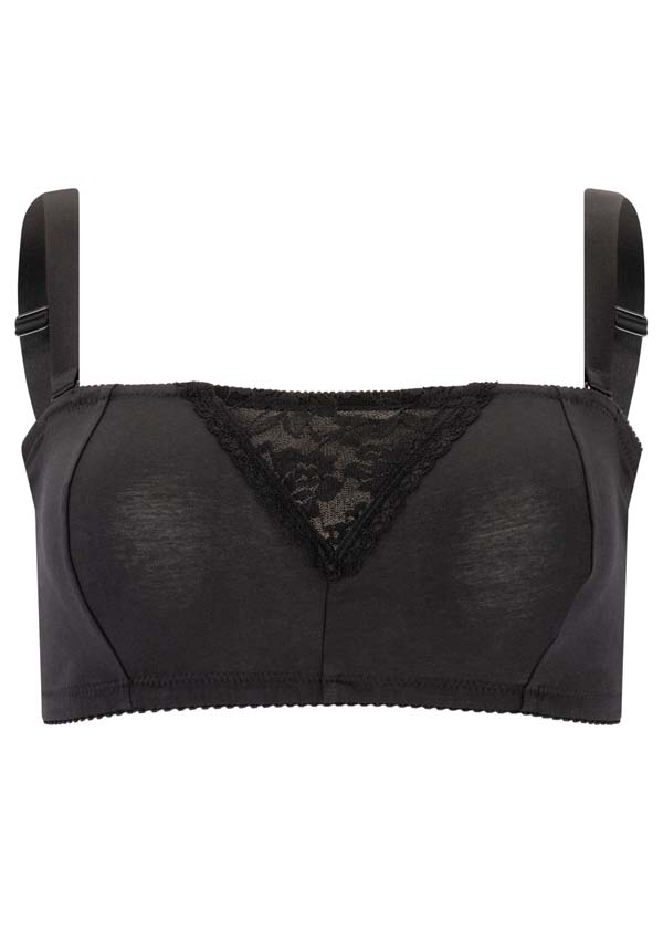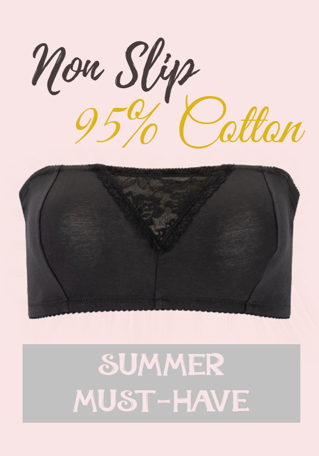 A cotton lace bandeau bra with removable straps and silicone edging on top to ensures no slippage in this unpadded, non-wired bra.