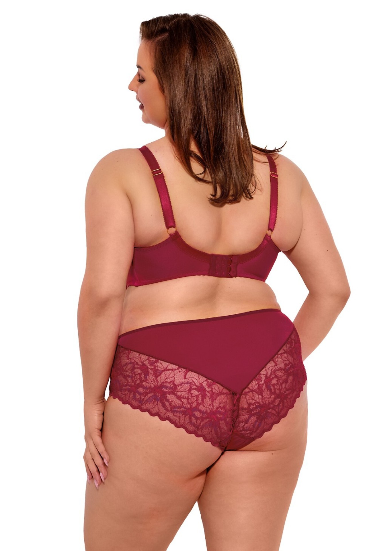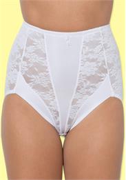 Classic womens brief with higher waistline, built-up hips. Smooth microfiber, lace inserts on the front and back.